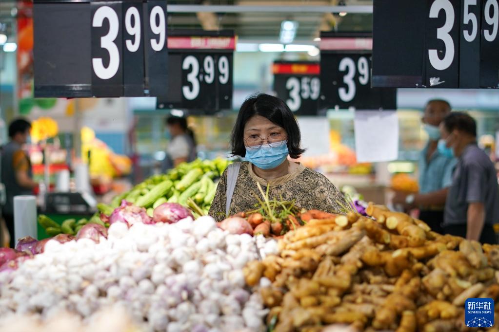 市民在江蘇省無錫市經(jīng)開區(qū)華潤萬家超市購物(2022年7月7日攝)。江蘇省無錫市在做好疫情防控的同時,積極制定相關(guān)方案,制作城市保供地圖,組織大型商超、市場正常運營,全力保供穩(wěn)價,端穩(wěn)市民“菜籃子”。
