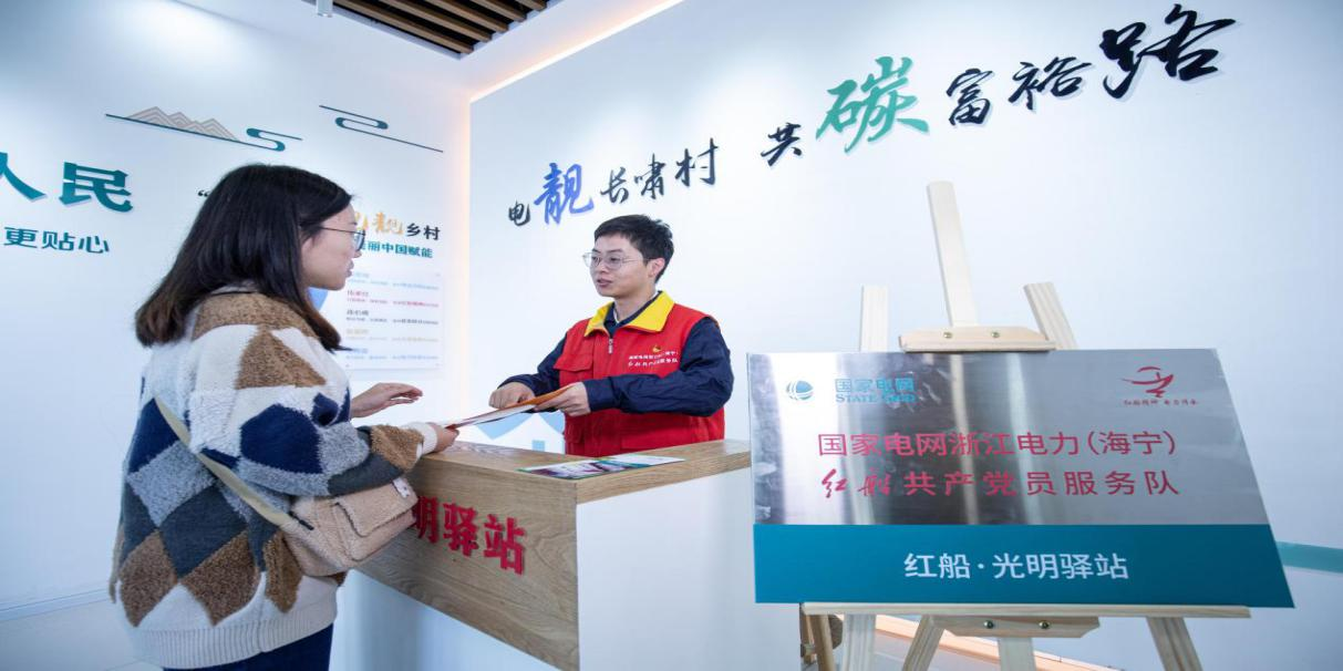 國家電網浙江電力黨員在“紅船·光明驛站”接受村民用電咨詢
