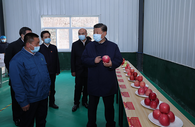 10月26日至28日,中共中央總書記、國家主席、中央軍委主席習近平在陜西省延安市、河南省安陽市考察。這是26日下午,習近平在延安市安塞區(qū)高橋鎮(zhèn)南溝村蘋果洗選車間,察看當?shù)胤N植的蘋果。
