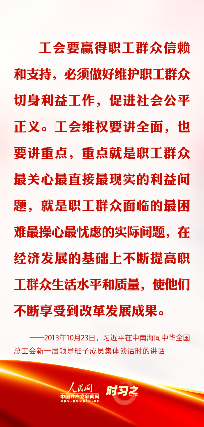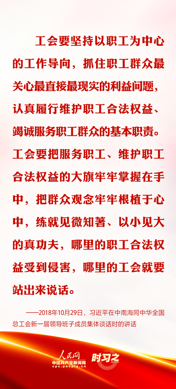 長期以來,習近平總書記心系廣大職工群眾最關心最直接最現(xiàn)實的利益問題,多次強調“工會要堅持以職工為中心的工作導向”。