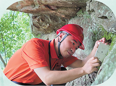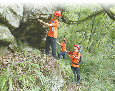 陳昊在一危巖隱患點(diǎn)進(jìn)行測(cè)量。