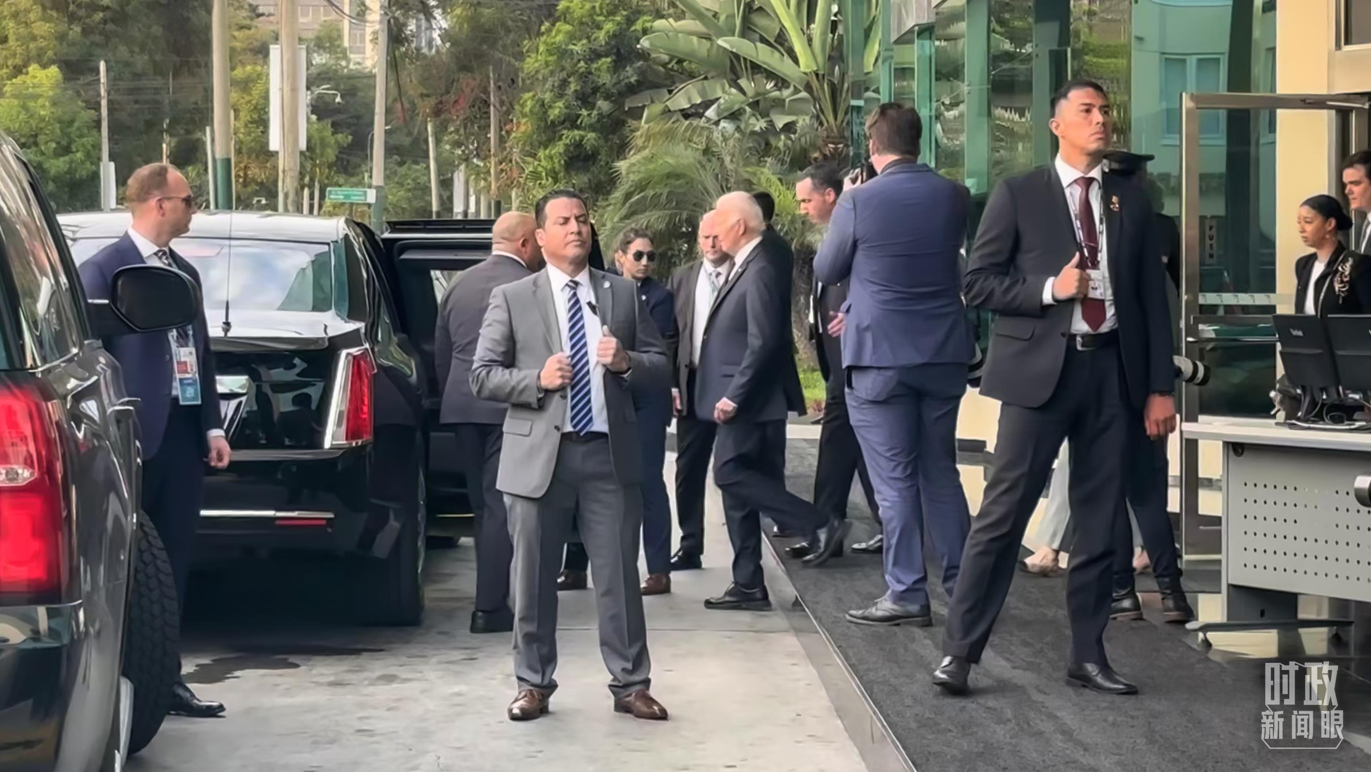 △美國(guó)總統(tǒng)拜登乘車(chē)抵達(dá)會(huì)晤現(xiàn)場(chǎng)。