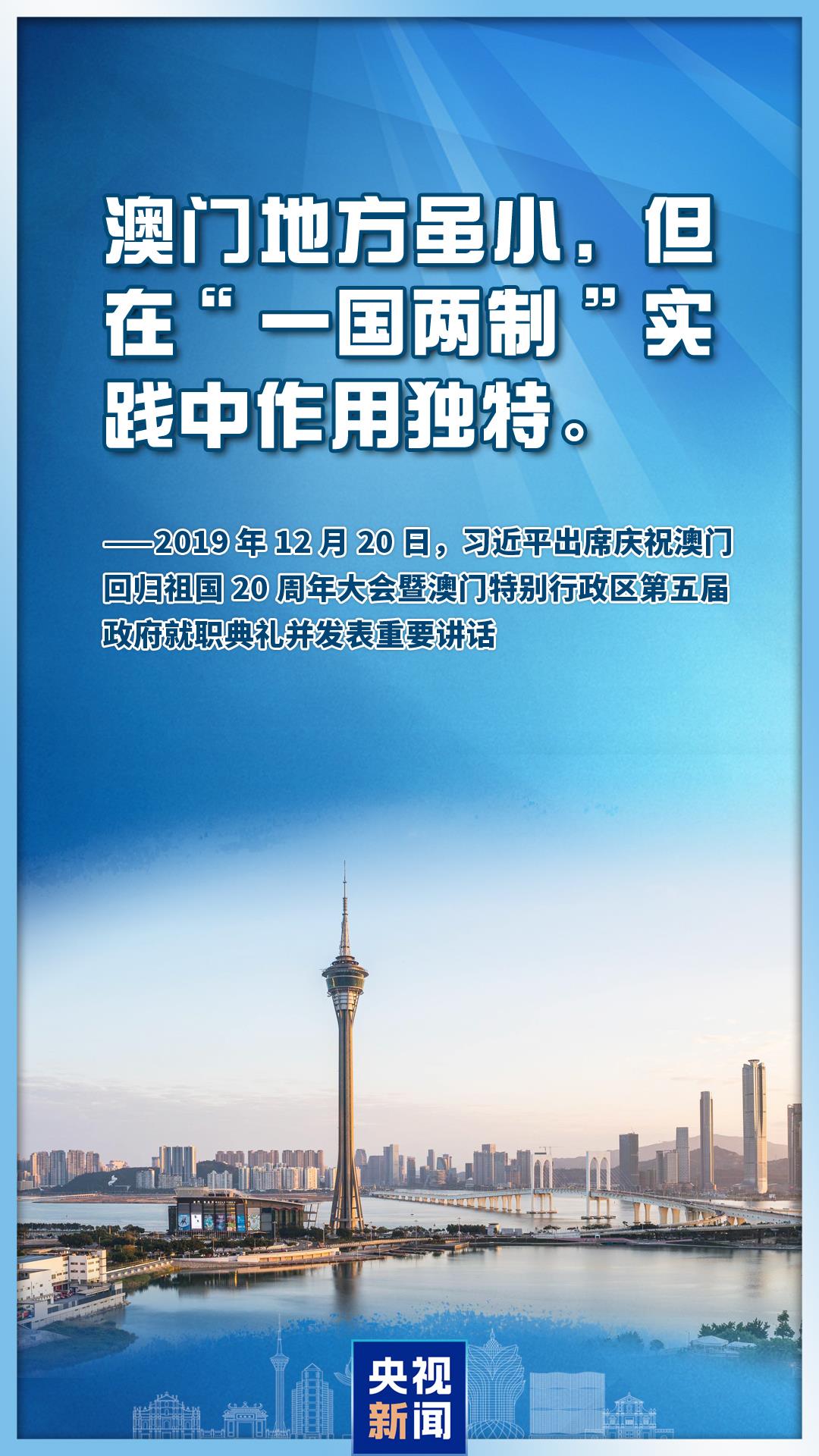 25年來,澳門治理體系日益完善、經(jīng)濟(jì)快速增長、民生持續(xù)改善、社會和諧穩(wěn)定、多元文化交相輝映,向世界展示了具有澳門特色“一國兩制”的成功實(shí)踐。對此,習(xí)近平主席給予高度評價。