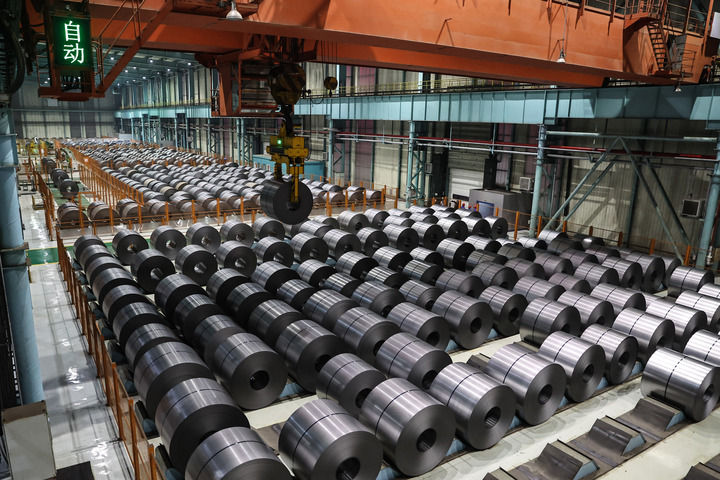 這是2025年1月23日拍攝的鞍鋼集團本鋼板材冷軋總廠第三冷軋廠生產(chǎn)車間。